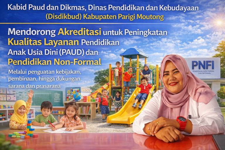 Parigi Moutong, redaksirakyat.com – Dinas Pendidikan dan Kebudayaan (Disdikbud) Kabupaten Parigi Moutong, mendorong akreditasi untuk peningkatan kualitas layanan Pendidikan Anak Usia Dini (PAUD) dan pendidikan non-formal melalui penguatan kebijakan, pembinaan, hingga dukungan sarana dan prasarana.